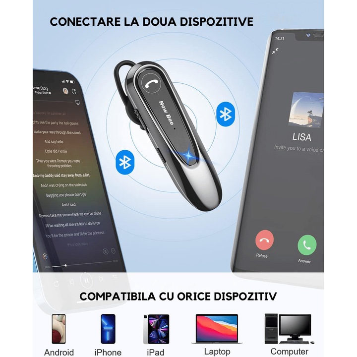 Cercip Cargo partener oficial New Bee va prezinta casca bluetooth wireless LC-B45 ​​​​​​.