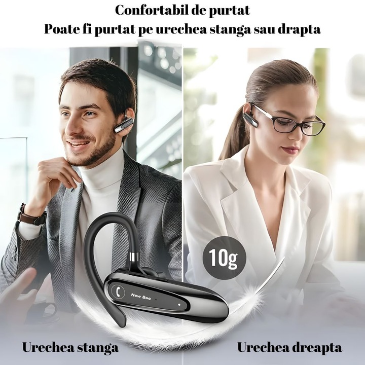 Proiectat cu o greutate redusa de doar 10 g, nu pune nicio povara pe urechi. Microfonul flexibil si carligul rotativ pentru ureche sunt concepute pentru a se potrivi in oricare ureche si sunt incluse 3 dimensiuni de varfuri hibride din cauciuc siliconic.