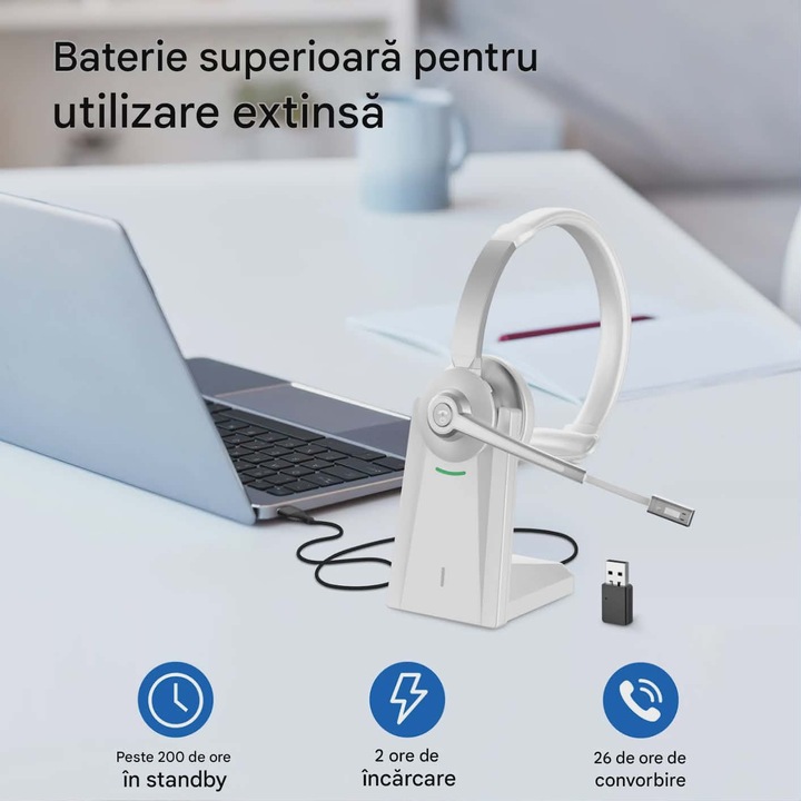 Casca Call Center CerCip 783, Statie de încarcare, Baterie 26 ore, Multipoint,Anulare zgomot